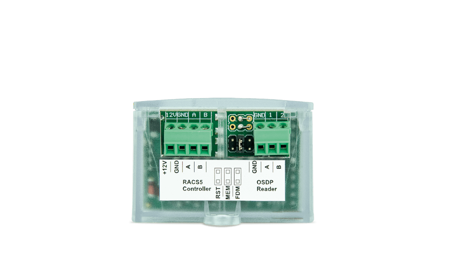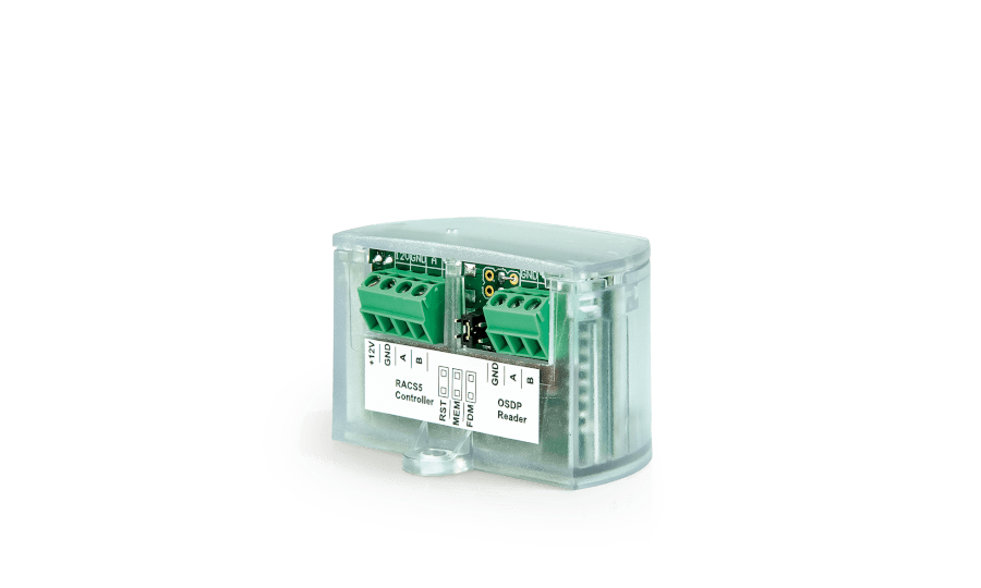 Interfejs umożliwia podłączenie czytników wykorzystujących protokół OSDP do kontrolerów serii MC16 (system RACS 5); zasilanie 12 VDC